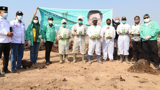 Sejumlah petugas taman pemakaman umum (TPU) Rorotan, Cilincing, Jakarta Utara menerima 150 paket sembako dari Ketua Umum Partai Kebangkitan Bangsa (PKB), Abdul Muhaimin Iskandar. Dalam kesehariannya, petugas TPU Rorotan melayani pemakaman jenazah COVID-19.