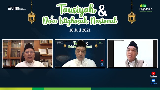 PT Pegadaian (Persero) menggelar istigosah nasional bertajuk 'Tausiyah dan Doa Istigosah Nasional' untuk Indonesia sehat. Acara yang digelar secara daring itu menghadirkan Ketua MUI Pusat, KH. Cholil Nafis menjadi pemberi Tausiyah dan Katib Syariah PBNU, KH. Zulfa Mustofa, memimpin jalannya Istigosah Nasional atau doa bersama.