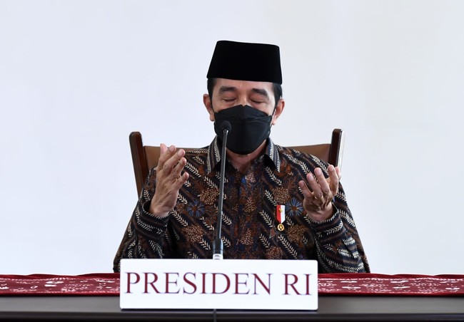 Presiden Joko Widodo (Jokowi) bertakbir di malam Idul Adha 1442 H ini. Pada Idul Adha dalam suasana pandemi COVID-19, Jokowi menilai perlu lebih banyak pengorbanan yang dilakukan.