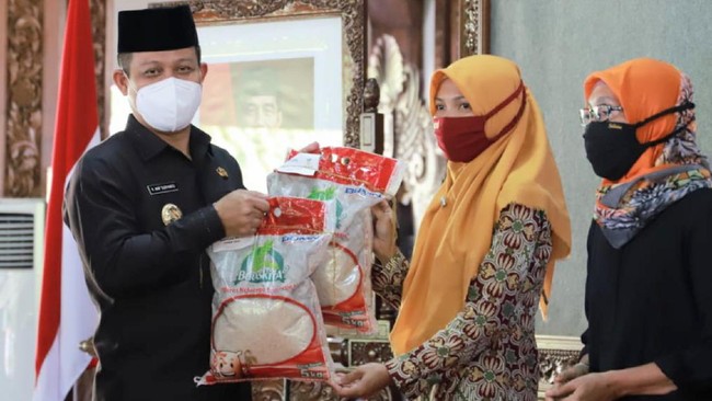 "Saya ini ibu rumah tangga, suami saya kerjanya tukang bengkel sepeda di Selang. Saya ucapkan terima kasih kepada Pak Bupati karena sudah diberikan bantuan beras. Harapan saya semoga COVID-19 bisa cepat berakhir, jujur saja pemasukan kita sekarang berkurang, sementara kebutuhan jalan terus, malah bertambah," ucapnya.