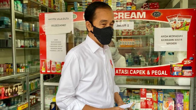 Presiden Joko Widodo (Jokowi) kembali blusukan di tengah pandemi. Terbaru, Jokowi mendatangi apotek di Bogor dan menanyakan ketersediaan obat terapi COVID-19, yakni Oseltamivir dan Favipiravir.