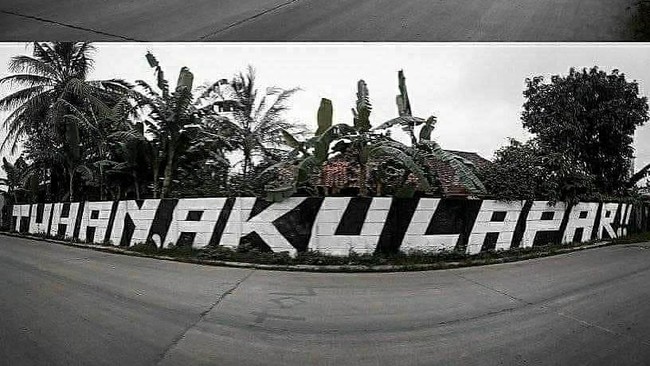 Sebuah grafiti bertuliskan 'Tuhan Aku Lapar' di Tigaraksa, Kabupaten Tangerang, viral di media sosial. Namun, grafiti itu telah dihapus.