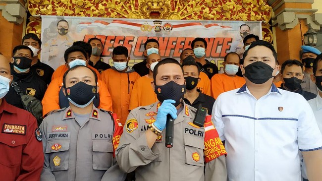 "Dari hasil pengembangan, kita berhasil mengamankan 7 orang tersangka," kata Kapolresta Denpasar Kombes Jansen Avitus Panjaitan saat konferensi pers di Mapolresta Denpasar, Senin (26/7/2021).