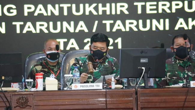 Panglima TNI Marsekal Hadi Tjahjanto memimpin sidang Penilaian Panitia Penentu Akhir (Pantukhir) Terpusat Akademi TNI. Hadi mengingatkan para calon taruna dan taruni akan tantangan TNI yang semakin kompleks ke depan.