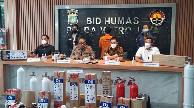 "Tabung ini tabung APAR yang biasanya diisi CO2. Tapi, dengan upaya tersangka ini untuk mencari keuntungan, mengubah tabung ini kemudian diisi dengan oksigen," kata Kabid Humas Polda Metro Jaya Kombes Yusri Yunus di Polda Metro Jaya, Jakarta, Jumat (30/7/2021).