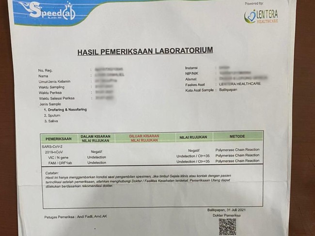 Klinik Lentera Healthcare Balikpapan buka suara terkait kasus dugaan penjualan surat PCR palsu. Dalam kasus ini, polisi sudah menangkap seorang berinisial P (32) yang diduga sebagai pembuat dan penjual surat PCR palsu tersebut.