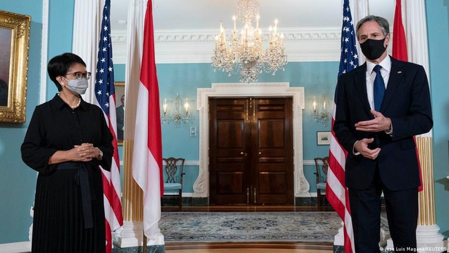 Menteri Luar Negeri (Menlu) RI Retno Marsudi melakukan pertemuan billateral dengan Menteri Luar Negeri AS Antony Blinken, Penasihat Keamanan Nasional AS Jake Sullivan dan sejumlah pejabat AS lainnya di Washington DC, Amerika Serikat. Pertemuan tersebut membahas kemitraan dialog strategis antar kedua negara dari mulai soal kesehatan hingga perdagangan.