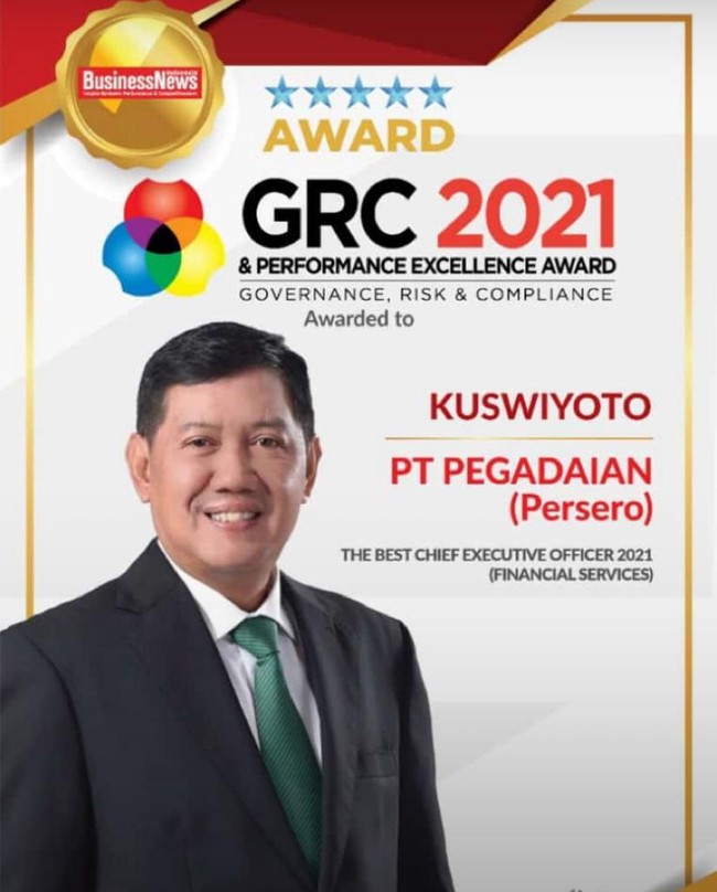 Adapun penghargaan ini diberikan atas capaian Pegadaian dalam meningkatkan pelayanan terhadap pelanggan maupun mitra bisnis. Pegadaian juga meraih penghargaan lainya, seperti The Best GRC Overall For Corporate Governance & Performance 2021 (Financial Services), The Best Chief Executive Officer (CEO), The Best Chief Executive Officer & Risk Management Officer, dan The Best Chairperson In Financial Services