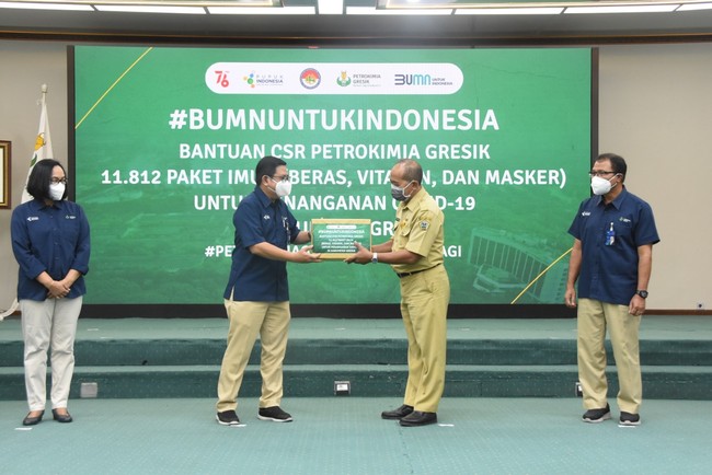 Adapun paket imun yang dibagikan berisi beras, masker medis dan vitamin. Bantuan tersebut selanjutnya didistribusikan kepada 11.812 Kepala Keluarga (KK) yang ada di Desa Roomo (1.200 KK), Kelurahan Tlogopojok (2.177 KK), Kelurahan Lumpur (1.869 KK), Kelurahan Karangturi (1.372 KK), Kelurahan Karangpoh (977 KK), Kelurahan Sukorame (1.800 KK), Kelurahan Ngipik (523 KK), Kelurahan Kroman (1.350 KK) dan Kelurahan Sukorejo (544 KK).
