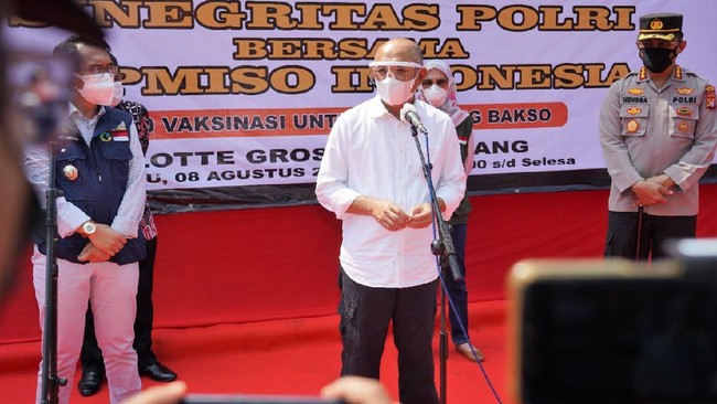 Teten memberi apresiasi langkah Pengurus Paguyuban Pedagang Mie dan Bakso (Papmiso) Indonesia yang menyelenggarakan 1.000 Vaksinasi Merah Putih untuk para pelaku UMKM, pedagang mie, dan bakso di Kabupaten Bekasi.