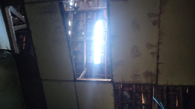 "Jadinya saat hujan itu serpihan-serpihan genteng pada turun ke bawah, setiap hujan. Serpihan gentengnya menimpa balita saya umur 1,5 tahun, sobek kepalanya," ujar Sarif ketika dihubungi detikcom, Selasa (10/8/2021).