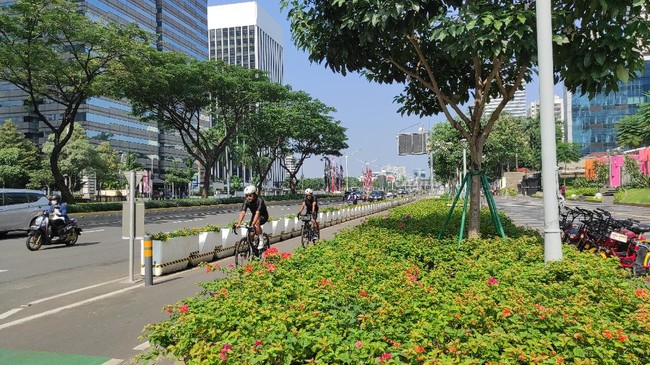 Pantauan detikcom, pukul 09.20 WIB, Rabu (11/8/2021), terlihat belasan pesepeda beraktivitas di depan gedung FX Sudirman. Selain itu, beberapa warga joging di trotoar.