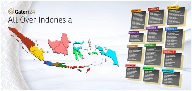 Tercatat di tahun 2021 Galeri 24 sudah meresmikan hampir 10 outlet dengan kurun waktu kurang dari 6 bulan. Penambahan outlet-outlet baru Galeri 24 tersebar luas di berbagai wilayah Indonesia. Sementara itu, informasi lengkap mengenai keseluruhan outlet galeri 24 baik alamat lengkap maupun nomor kontak outlet yang dapat dihubungi, bisa langsung melalui website resmi www.galeri24.co.id
