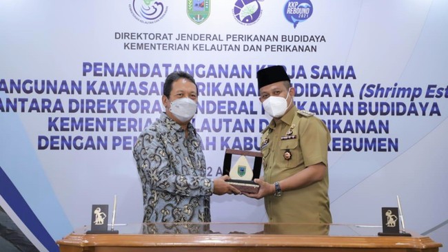 Penandatanganan perjanjian terkait pengembangan kawasan tersebut dilaksanakan oleh Bupati Kebumen Arif Sugiyanto dengan Direktur Jenderal Perikanan Budidaya (DJPB) KKP, Tb Haeru Rahayu di Kantor KKP, Kamis (12/8/2021).