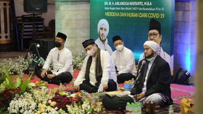 Airlangga yang juga Ketua Komite Penanganan COVID-19 dan Pemulihan Ekonomi Nasional (KPCPEN) ini hadir dalam acara 'Indonesia Bersholawat' yang digelar oleh Majelis Ahlul Hidayah (AH). Acara ini dilaksanakan dalam rangka memperingati Hari Kemerdekaan RI ke-76 dan sekaligus Perayaan Tahun baru Islam 1443 Hijriah.