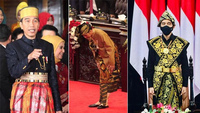 Sekretariat Kabinet melalui akun Instagram resmi mengunggah foto Jokowi selama tiga acara pidato sidang tahunan MPR yang selalu memakai baju adat daerah tertentu.