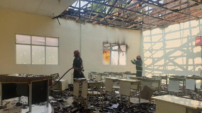 "Tadi sekitar jam 13.30 WIB, api mulai terlihat dari gudang yang tadinya garasi, kemudian ruang kelas ikut terbakar," kata Ketua RT 02/07, Kelurahan Ciwaduk, Inca Putra, Selasa (17/8/2021).