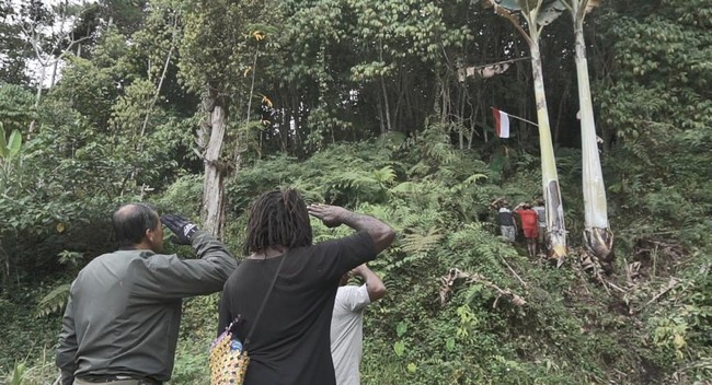 "Bapak, ini ada bendera, nanti dipasang, kita punya tanah ini harus dijaga, kita punya orang tua, leluhur, pejuang, pahlawan dari tanah Papua ini banyak, ada Marthen Indey, Frans Kaisiepo, Abraham Johanes Dimara, dan lain sebagainya," ujar Cantiasa.