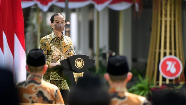 "Kenapa anak-anakku semuanya dijadikan duta Pancasila, kita ingin membumikan Pancasila dengan cara-cara baru, dengan pendekatan yang lebih kekinian sehingga nilai-nilai Pancasila ini bisa tertanam di generasi muda kita lewat saudara-saudara semuanya. Karena tanpa itu kita nggak bisa membayangkan negara sebesar ini, dengan perbedaan-perbedaan yang begitu sangat," kata Jokowi saat memberikan pengarahan di acara Purnapaskibraka Duta Pancasila seperti ditayangkan di akun YouTube Sekretariat Presiden, Rabu (18/8/2021).