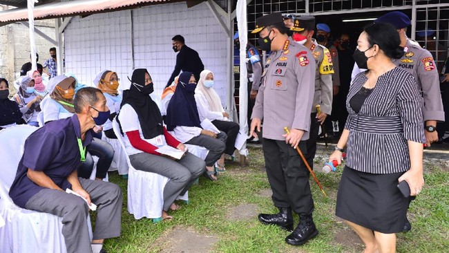 Kapolri Jenderal Listyo Sigit Prabowo meninjau langsung kegiatan vaksinasi massal yang berkolaborasi bersama dengan Konfederasi Serikat Buruh Seluruh Indonesia (KSBSI) di PT Elite, Tangerang, Banten. Kapolri berjanji akan memperkuat percepatan vaksinasi di wilayah aglomerasi Banten.