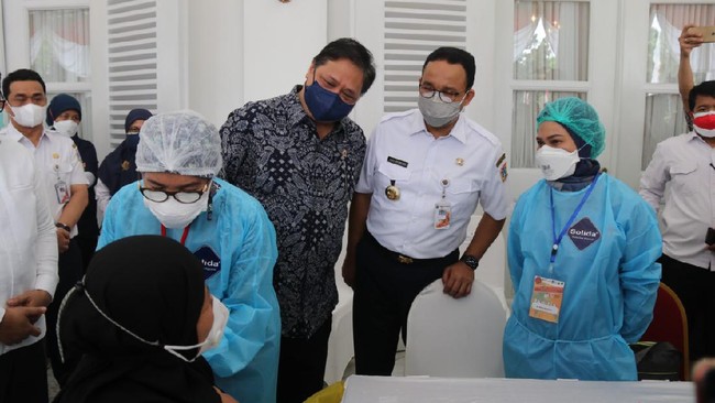 "Dan kita berterima kasih DKI salah satu yang tertinggi untuk vaksin pertama," kata Airlangga.