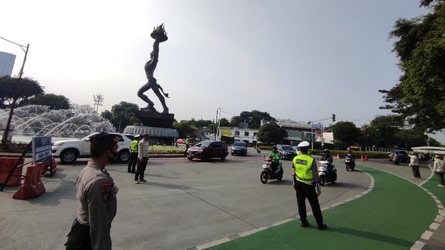 Terlihat anggota Kepolisian, Satpol PP, dan Dinas Perhubungan DKI Jakarta berjaga di lokasi. Beberapa kendaraan sempat berhenti untuk bertanya kepada petugas.
