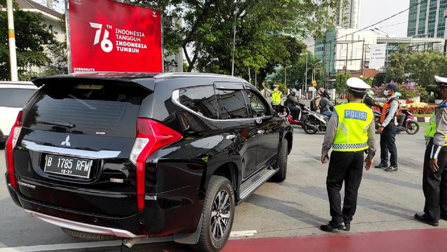 Pantauan detikcom, Jumat (20/8/2021) pukul 08.52 WIB, awalnya mobil pelat 'RFW' tersebut hendak melintas ke Jalan Jenderal Sudirman. Terlihat berpelat ganjil, polisi langsung mengarahkan mobil tersebut ke Jalan Hang Lekir I, Jakarta Selatan.