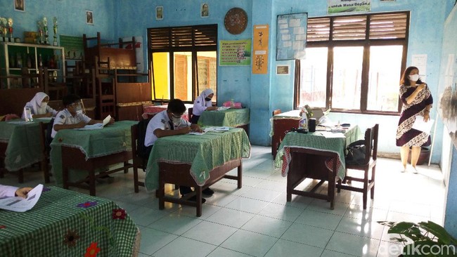 "Bagi satuan pendidikan yang melaksanakan pembelajaran tatap muka terbatas dilaksanakan dengan kapasitas maksimal 50% (lima puluh persen)," demikian bunyi Diktum Kelima huruf a seperti dilihat detikcom, Selasa (24/8/2021).