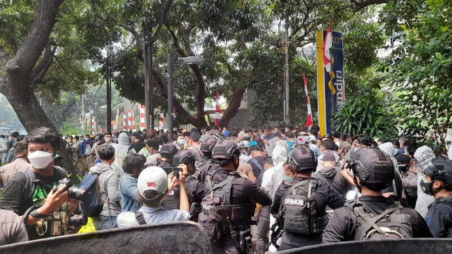 Pantauan detikcom di lokasi, Selasa (24/8/2021), pukul 12.30 WIB, puluhan aparat kepolisian mulai membubarkan secara paksa massa yang masih bertahan di depan kantor UNHCR. Polisi membubarkan massa dengan memukul mundur menggunakan Raimas.