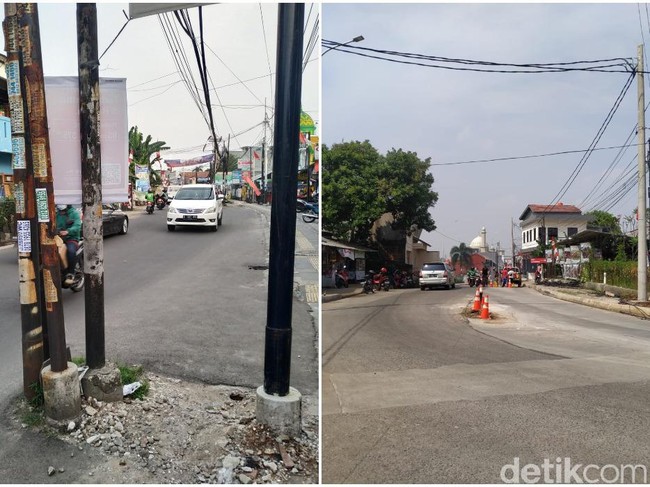Pantauan terbaru detikcom, Kamis (26/8/2021) pagi, belum ada tiang-tiang yang dipindah dari badan Jl WR Supratman di Ciputat Timur.
