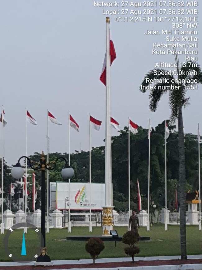 Dalam foto tersebut tertulis koordinat saat foto diambil. Lokasinya berada di Jalan MH Thamrin, Pekanbaru. Foto diambil hari ini pada pukul 07.36 WIB.