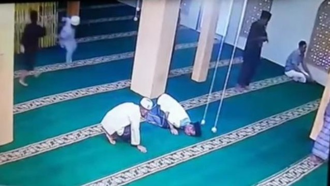 Dalam video berdurasi 3 menit 52 detik, terlihat pria yang mengenakan kain sarung dan berbaju putih itu berjalan memasuki masjid. Ia terlihat dalam kondisi normal saat mulai meletakkan sandal dan membuka pintu masuk ke dalam masjid.