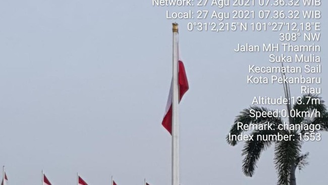 Kepala Satuan Polisi PP Riau Hadi Ponandio mengatakan insiden bendera Merah-Putih terbalik terjadi pukul 06.00 WIB. Setelah 1 jam lebih, barulah disadari Pol PP bahwa bendera terbalik.