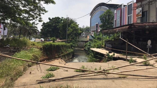 Terlihat sebagian konstruksi beton yang juga merupakan jembatan itu juga retak. Sampai saat ini jalan tersebut masih ditutup dan dialihkan.