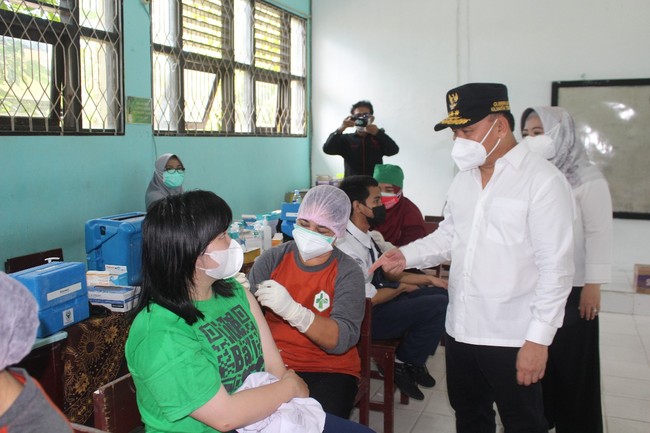 "Memang kondisi saat ini sangat berat dan penuh tantangan. Namun kami berupaya agar vaksinasi untuk pelajar ini cepat diselesaikan sehingga dapat sekolah tatap muka lagi," ujar Sugianto.