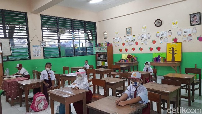 Pantauan detikcom di lokasi, sejumlah siswa mulai berdatangan sejak pukul 07.40 WIB. Mereka diantar oleh orang tua kemudian dicek suhu tubuhnya dan mencuci tangan sebelum masuk ke dalam kelas.