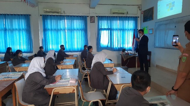 "Tapi selalu saya ingatkan kepada seluruh siswa, kita sekolah tatap muka ini bukan berarti COVID sudah tidak ada, maka harus berhati hati," ucap Deru.