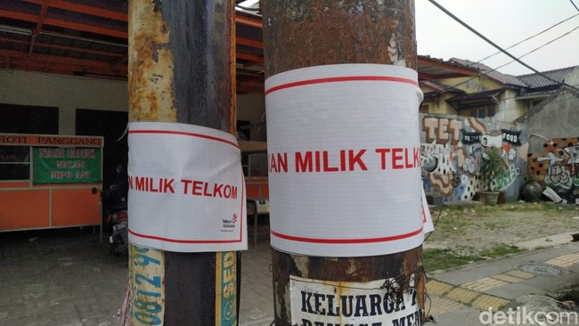 Tulisan itu menandakan bahwa tiang-tiang tersebut bukan properti dan tanggung jawab perusahaan teknologi PT Telekomunikasi (Telkom).