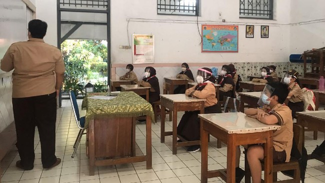 Setiap siswa yang hadir diwajibkan memakai masker medis. Siswa juga diminta menggunakan face shield saat mengikuti pembelajaran.