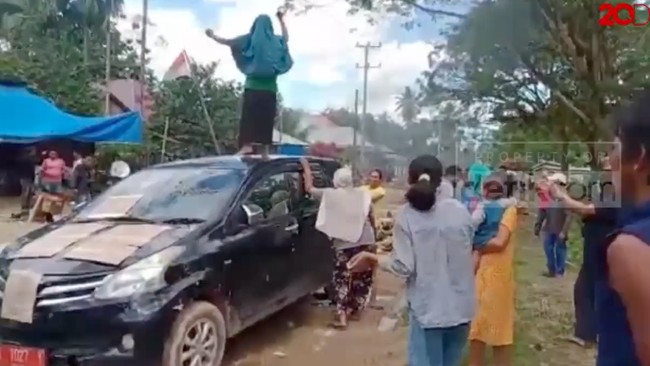 Sejumlah emak-emak di Desa Wakumoro, Kecamatan Parigi, Kabupaten Muna, Sulawesi Tenggara (Sultra), melakukan aksi protes soal jalan rusak di wilayahnya. Mobil pemerintah daerah (pemda) setempat yang melintas lantas ditahan dan diinjak-injak oleh emak-emak.