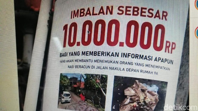 "Jadi karena itulah dia membuat sayembara seperti ini, karena kita tidak bisa membuktikan siapa yang melakukannya. Jadi dia buat poster, dia tempel di dekat-dekat di jalan dia di rumah itu, dan juga beberapa hari ini dia juga posting di Facebook, di social media," tutur Komang.