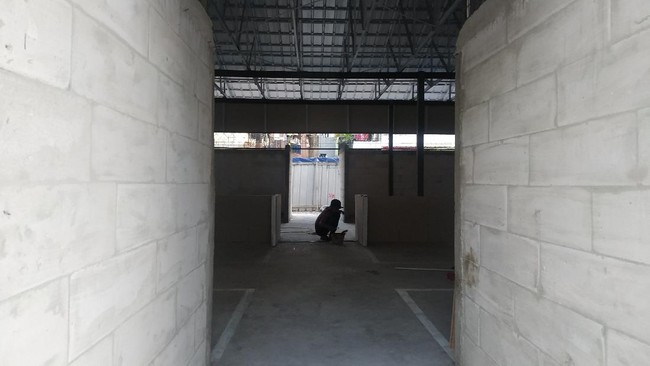 Di bagian dalam, para pekerja konstruksi masih asyik dengan sekop dan ember mereka. Bagian dalam Pasar Kambing masih minim pencahayaan, namun saat dipasang lampu nanti, kondisinya akan menjadi lebih terang.
