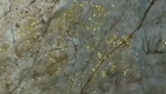 Di dinding-dinding dalam gua terlihat serpihan benda berwarna kuning. Benda itu disebut sebagai serpihan emas.