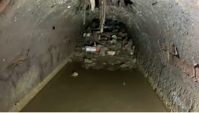 Dalam video terlihat ruang mirip bungker ini berukuran cukup besar. Seorang petugas tampak berdiri di dalam bungker itu setelah melewati terowongan. Terowongan kuno ini dipenuhi sampah bercampur lumpur.