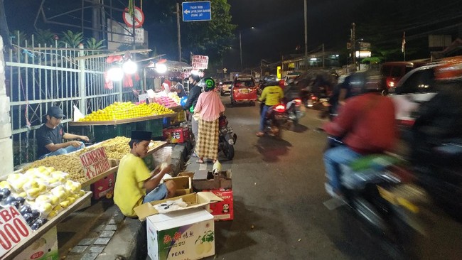 Pantauan detikcom pukul 19.15 WIB, Jumat (3/9/2021), jumlah pedagang di lokasi bertambah banyak dibanding pukul 16.00 WIB tadi, dari sekitar 10 lapak menjadi lebih dari 20 lapak. Para PKL tampak berderet menjajakan dagangannya, yang sebagian besar buah-buahan.