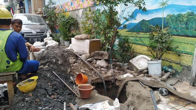 Pantauan detikcom di lokasi, Selasa (7/9/2021), proyek dilakukan di depan jalan masuk Gang 30, 31, dan 32. Pekerja proyek tampak menggali gorong-gorong yang lama dengan bantuan ekskavator.
