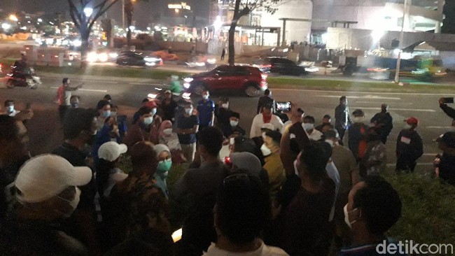 Tampak sejumlah orang kedapatan tidak menggunakan masker dan ada pula yang menurunkan masker ke dagu. Saat ini sudah tidak ada keramaian di sekitar lokasi. Terlihat massa membubarkan ke diri ke arah Jl Scientia Boulvard.