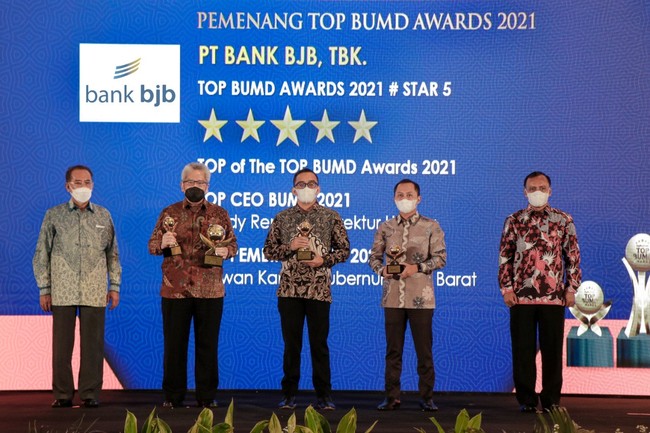 Bank bjb meraih 4 penghargaan sekaligus dalam ajang TOP BUMD Awards 2021. Bank bjb dinobatkan sebagai TOP of the TOP BUMD 2021, TOP BUMD Awards 2021, TOP CEO BUMD 2021 yang dianugerahkan kepada Direktur Utama bank bjb Yuddy Renaldi, serta TOP Pembina BUMD 2021 untuk Gubernur Jawa Barat Ridwan Kamil.