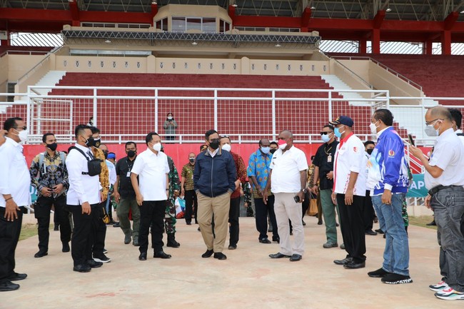 Menko Polhukam Mahfud Md meninjau kesiapan pengamanan Pekan Olahraga Nasional (PON) XX dan Pekan Paralimpiade Nasional (Papernas) XVI Papua. Mahfud berharap masyarakat bisa bekerja sama dengan aparat gabungan TNI-Polri untuk menyukseskan pesta olahraga nasional itu.
