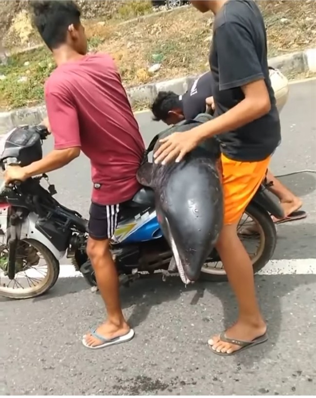 Video warga Bima, Nusa Tenggara Barat (NTB) mengangkut paus kepala melon (Peponocephala electra) menggunakan sepeda motor viral di media sosial (medsos). Mamalia tersebut akhirnya dikonsumsi warga.